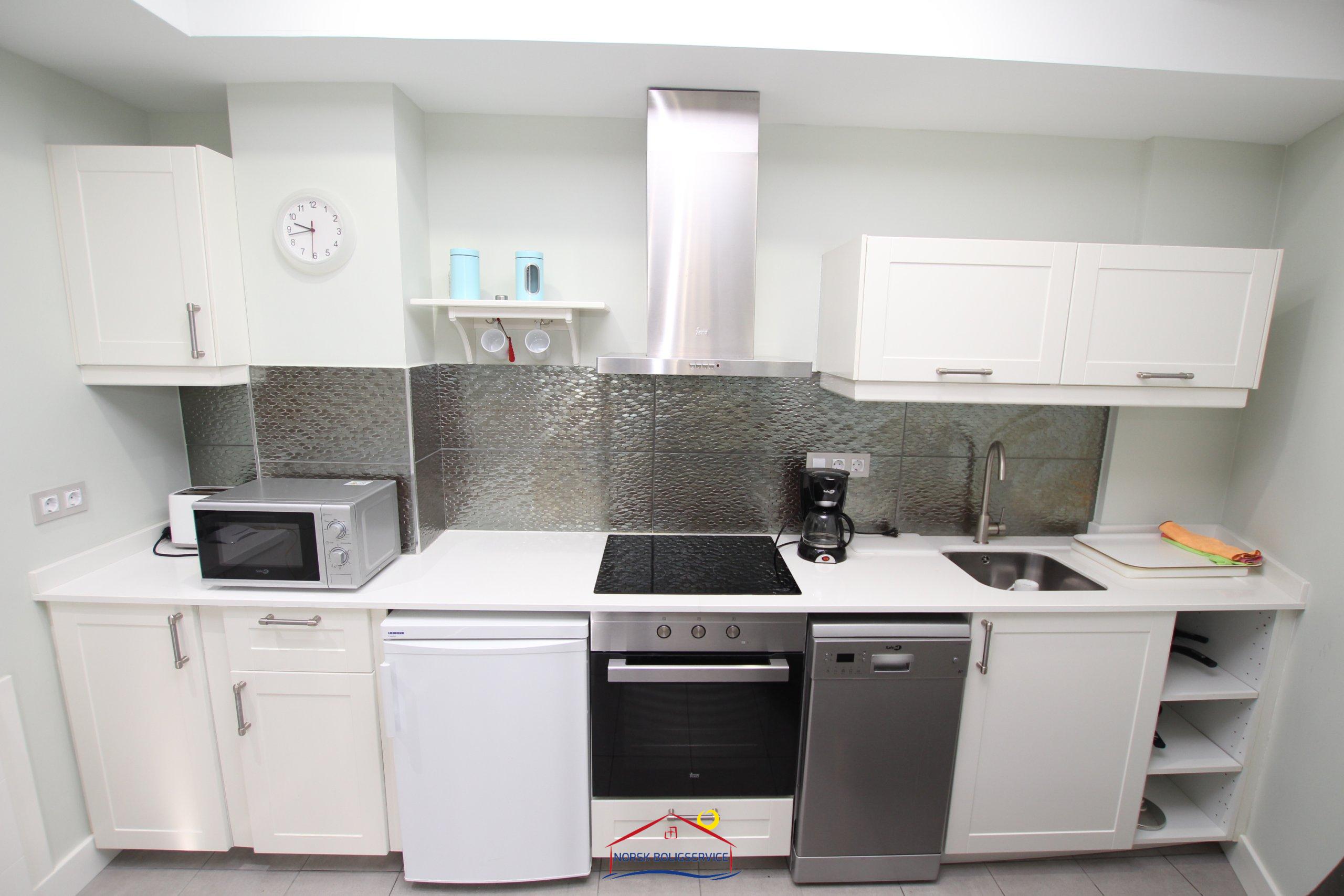 - Living room/kitchen equipped with dining table, sofa, fridge, oven, dishwasher and ceramic hob.
