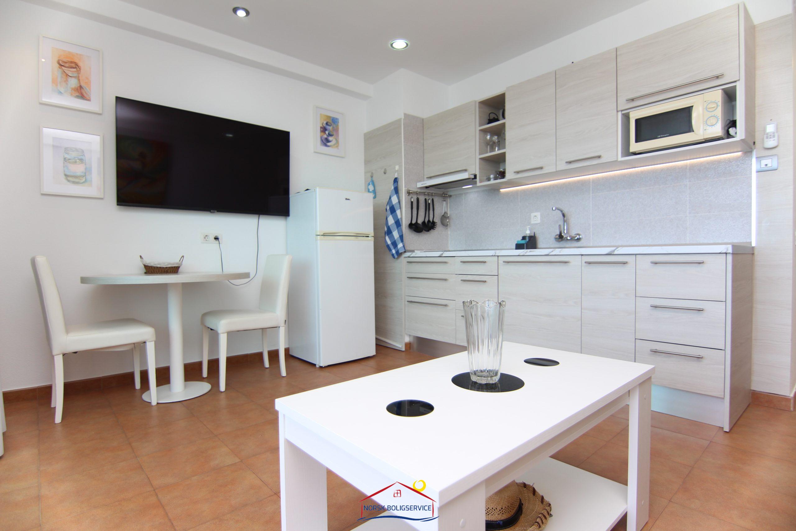 - Stue - kjøkken koselig og fargerikt. Her finner du alt du trenger for å lage mat og et romslig spisebord. Dette området har forbindelse til terrassen foran, slik at utsikten og naturlig lys er sikret.