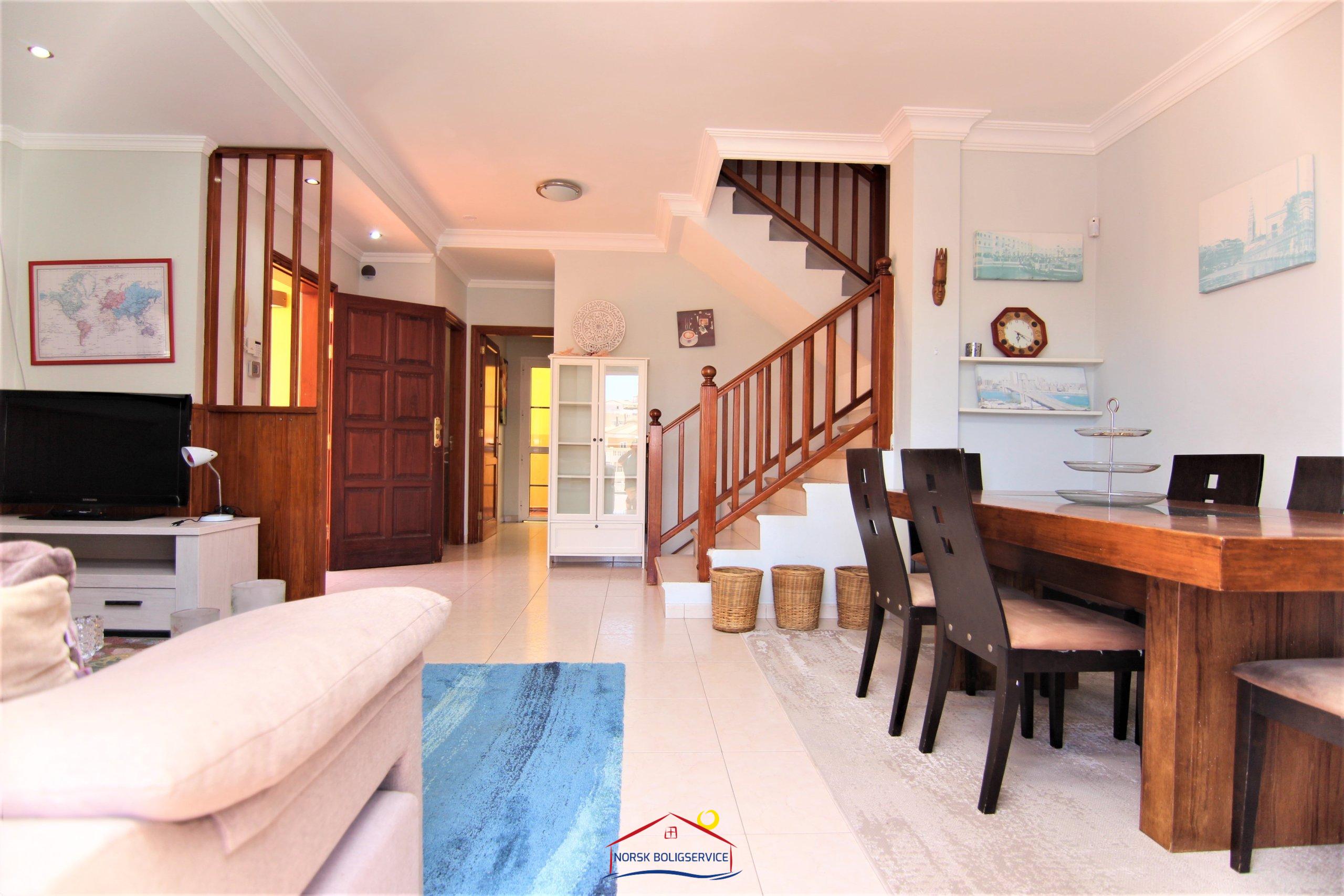 Det er en veldig romslig hus med fantastisk havutsikt.. Den har 2 etasjer pluss privat garasje og takterrasse. I tillegg har huset også en spektakulært privat svømmebasseng hvor du kan nyte det solfylte og rolige været som landsbyen Arguineguín har å by på praktisk talt hele året. Den har 150 m2 uteområde.